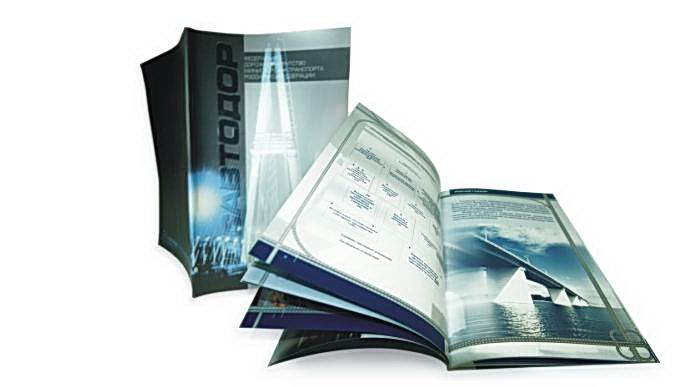 Фирменный буклет "Росавтодор". Печать в 5 красок, тиснение, выборочный UF-лак